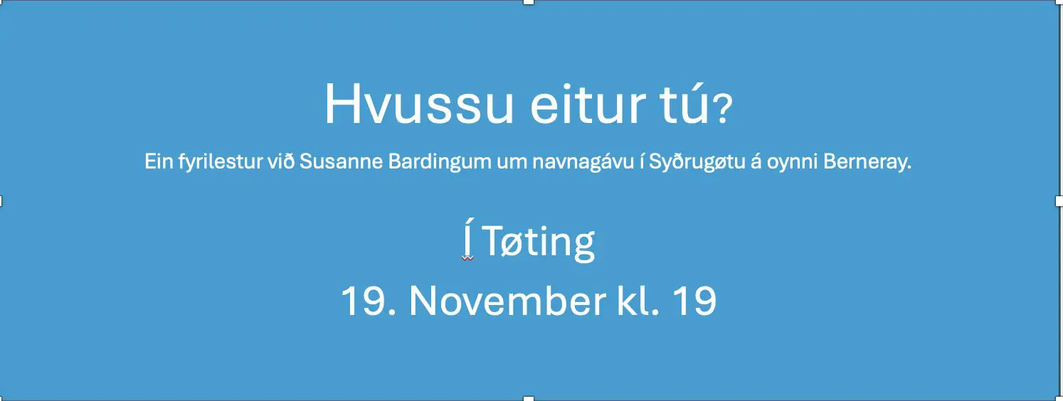 Hvussu eitur tú – ein fyrilestur við Susanne Barding um navnagávu í Syðrugøtu og Berneray