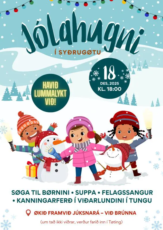 Hósdagin 18. desember verður eitt hugnaligt jólatiltak í Syðrugøtu ætlað bæði børnum og vaksnum.